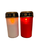 Veilleuse pour cimetière LED fonctionnant avec deux piles LR6 (incluses). Couleurs au choix : blanche ou rouge.